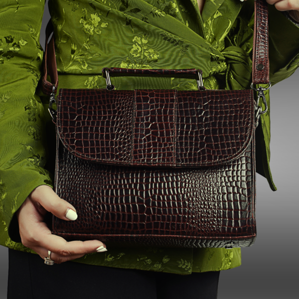 Croco Brown Leather Bag with Beige Accents – Stylish & Functional